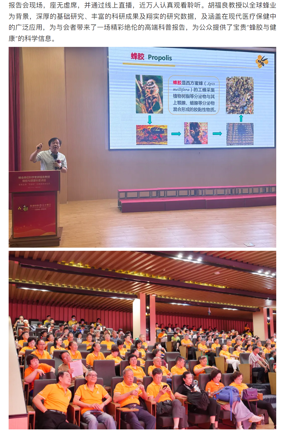 蜂業(yè)崗位科學(xué)家胡福良教授來廈“蜂膠與健康”科普?qǐng)?bào)告圓滿成功
